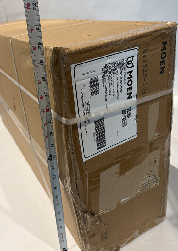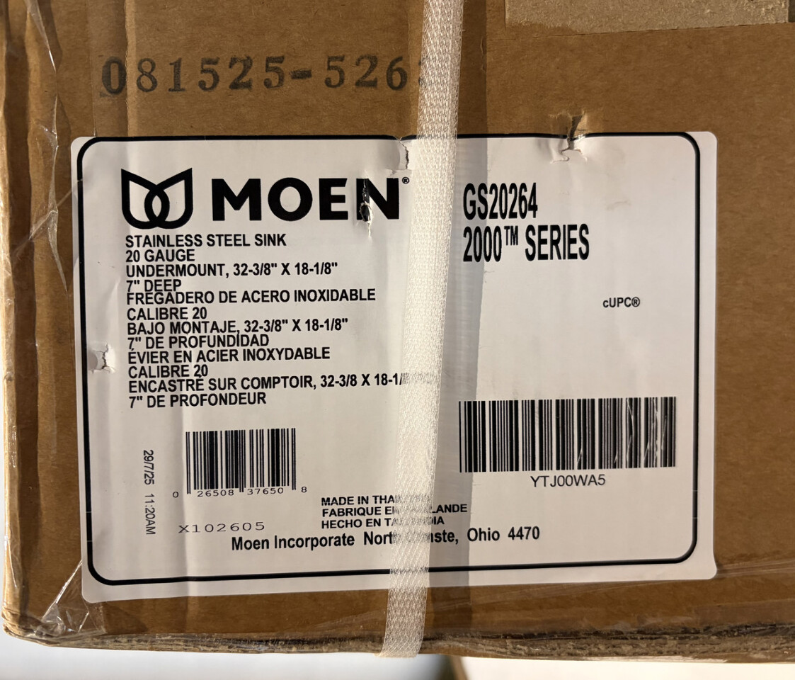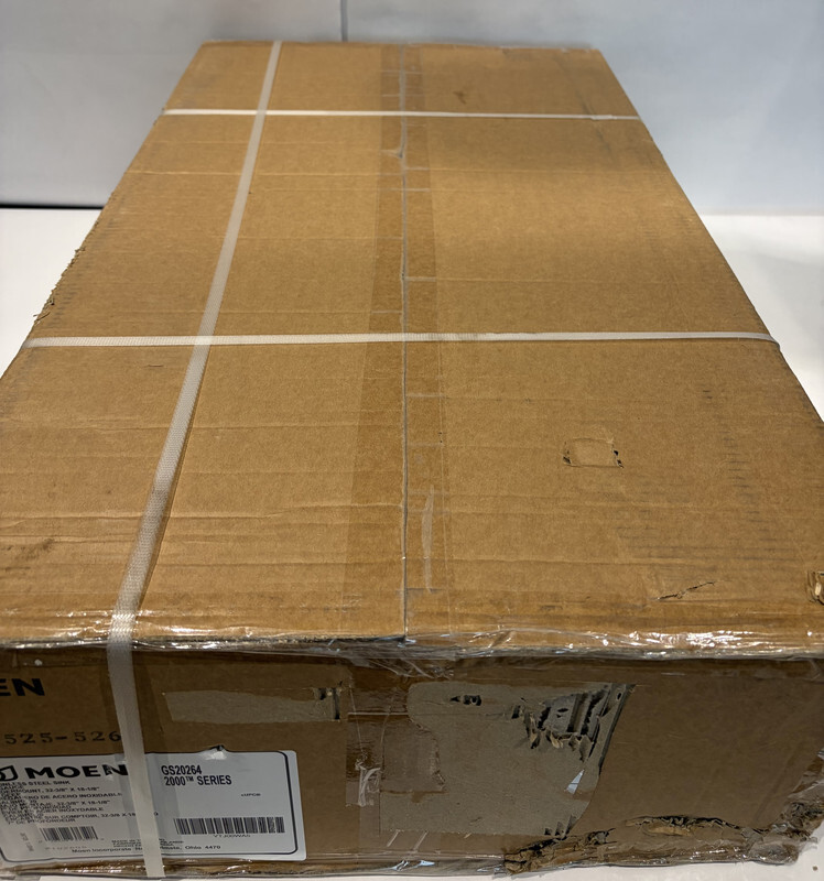 MOEN GS20264 2000 SERIES STAINLESS STEEL DUAL SINK 20 GAUGE 7" DEEP 33" X 19" This item is sealed in slightly freight worn box as shown