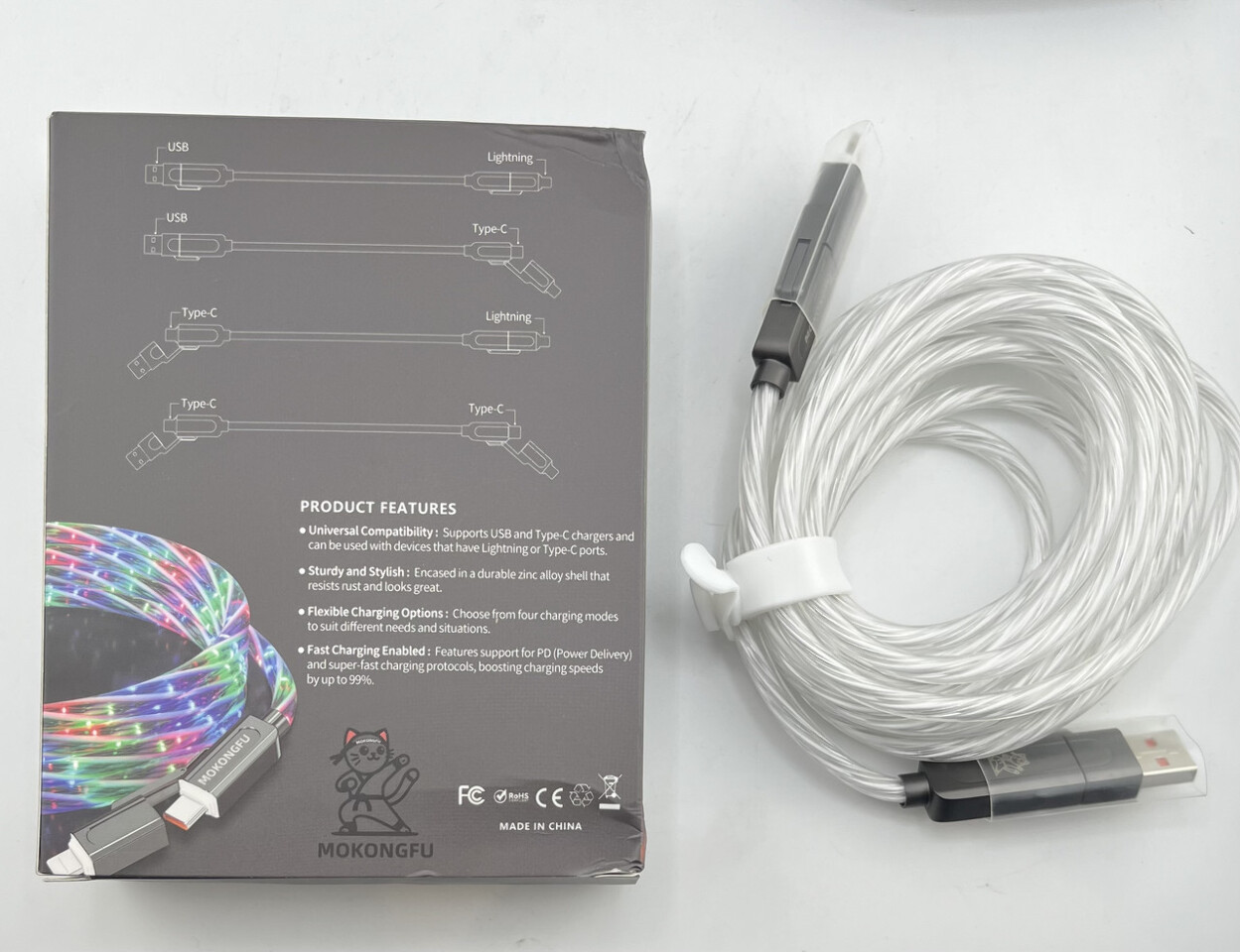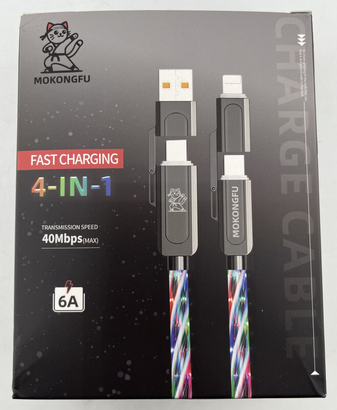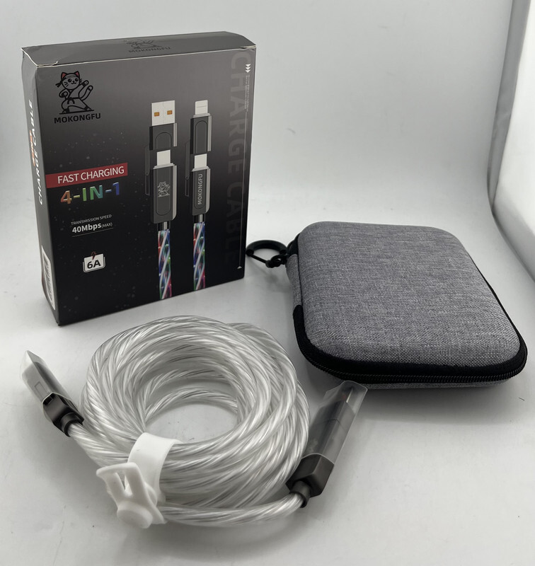 MOKONGFU 120W LIGHT UP 4 IN 1 CHARGER USB TYPE C LIGHTING CABLE This item is new as shown.