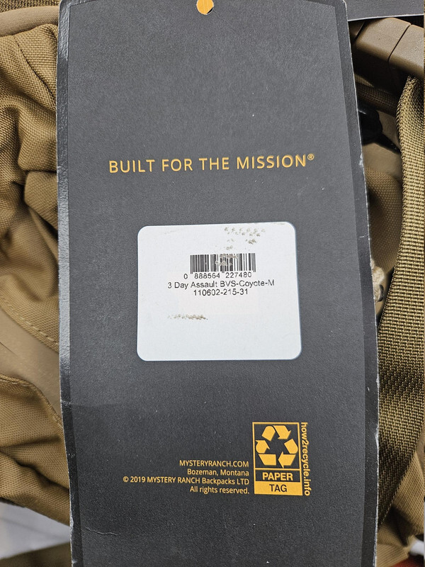 Mystery Ranch 110602-215-31, 3 Day Assault BVS-Coyote-M This item is new as shown.