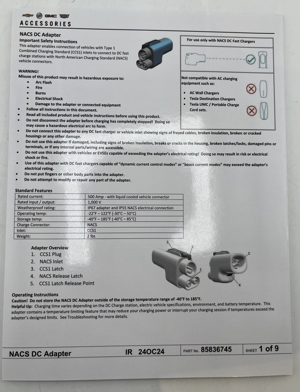 NACS AD ADAPTER 85836744 GENUINE GM ELECTRIC VEHICLES CCS1 FAST CHARGING INLET This item is sealed in box as shown