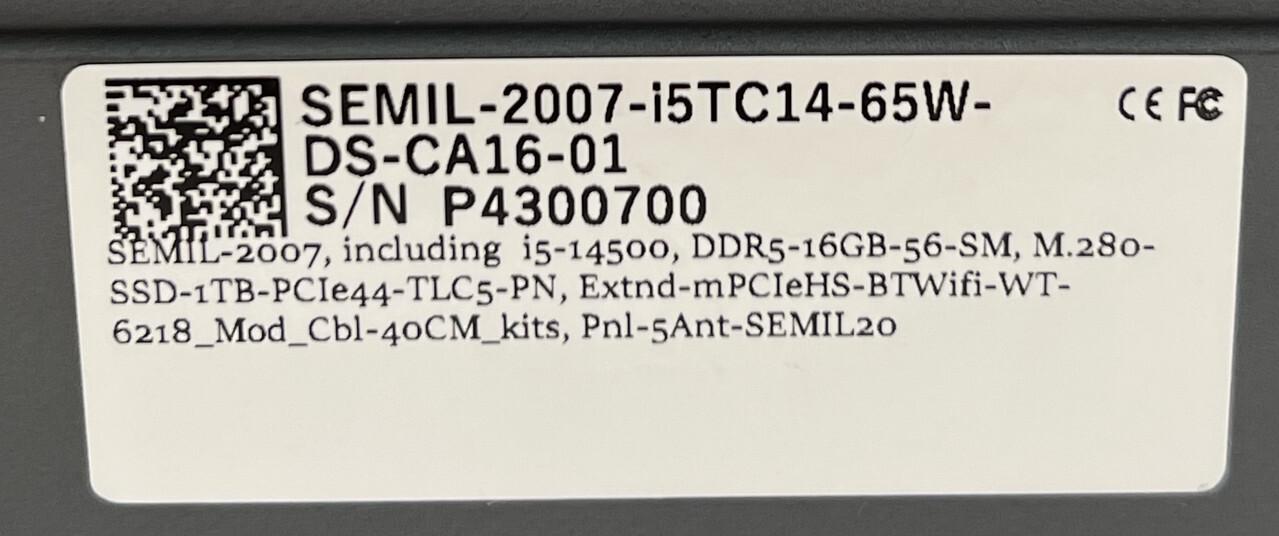 Neousys SEMIL-2007-i5TC14-65W-DS-CA16-01 PC Intel i5-14500 65W IP69K 10GbE M12 This item is new as shown.
