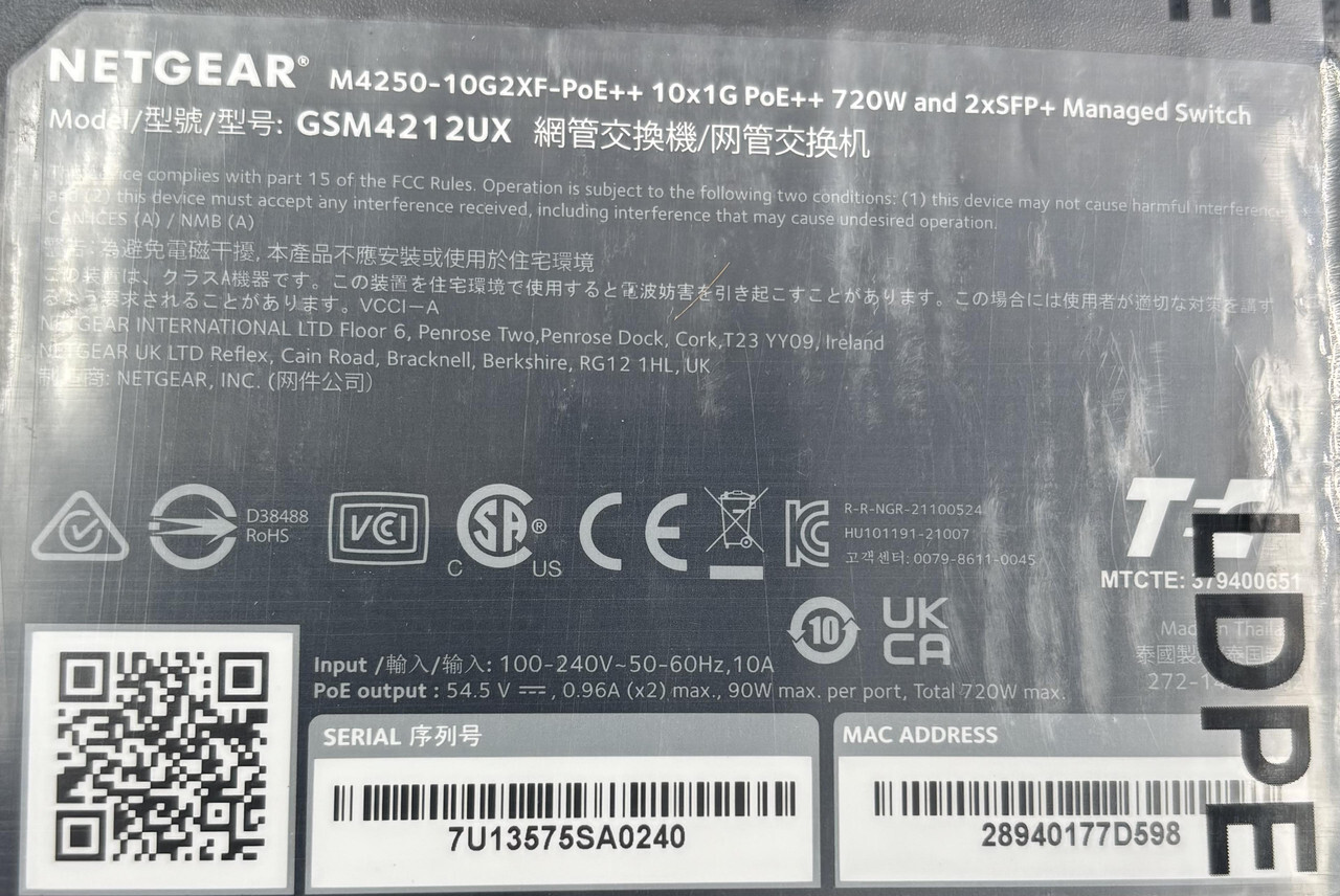 NETGEAR AV LINE M4250-10G2XF-POE++ GSM4212UX-100NAS MANAGED NETWORK SWITCH This item is new and internally sealed as shown.