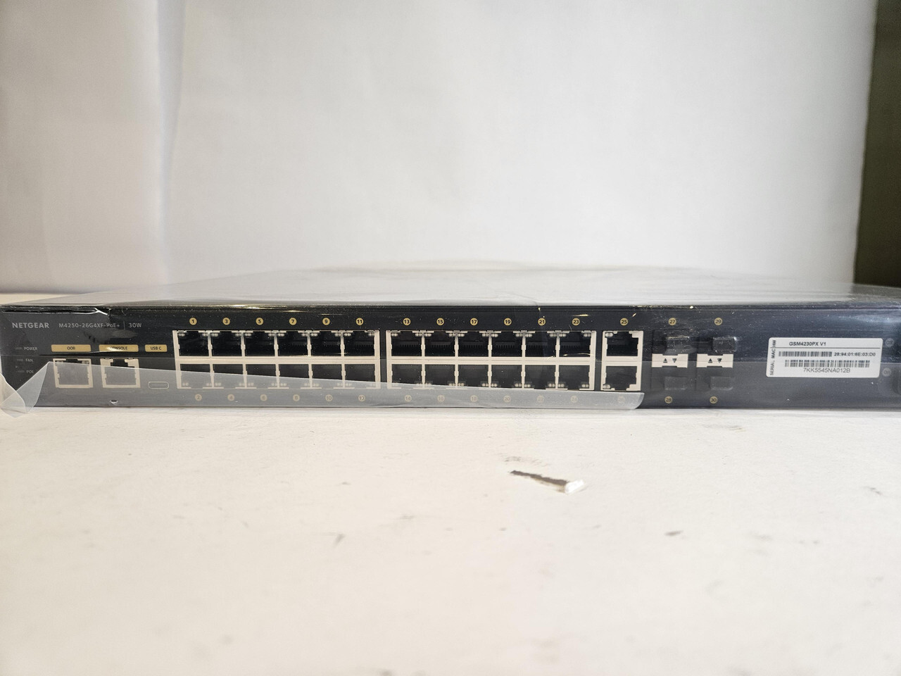 NETGEAR GSM4230PX, M4250-26G4XF-PoE+ Managed Switch AV Line This item is brand new and comes in a freight worn open box as shown.
