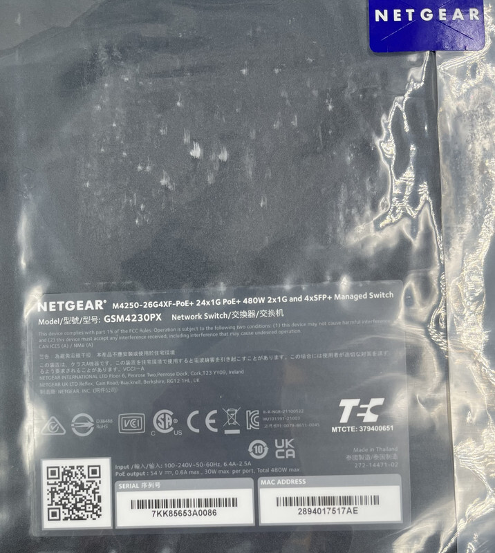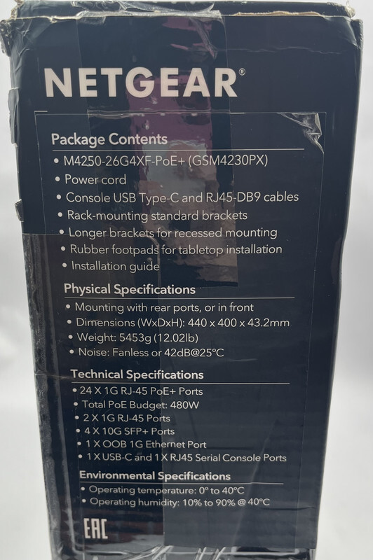 NETGEAR M4250-26G4XF-POE+ 26-PORT MANAGED SWITCH 4X 10G SFP+ GSM4230PX-100NAS This item is new as shown in a freight worn box