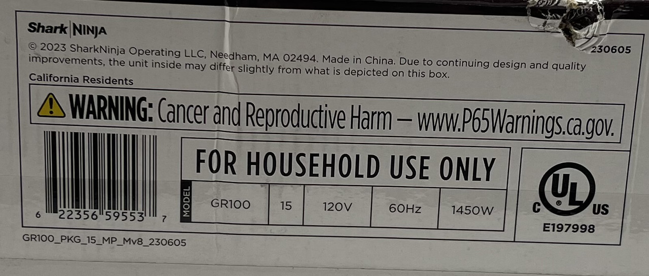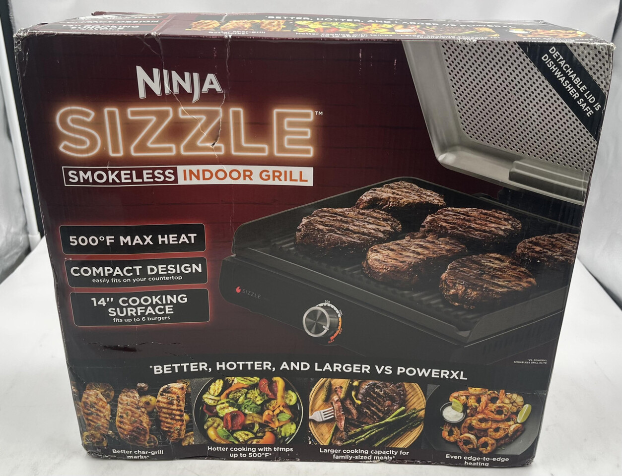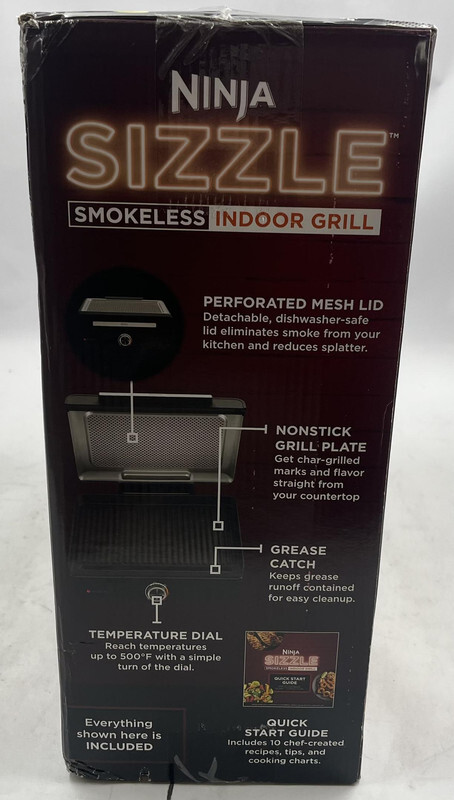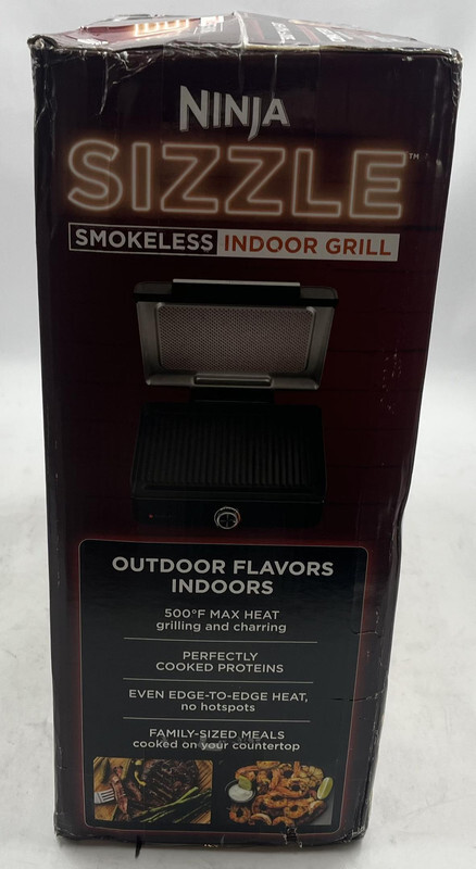 NINJA GR100 SIZZLE SMOKELESS INDOOR GRILL 14" This item is new and sealed with slight freight wear as shown.