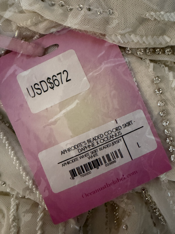 Oceanus X Daphne Aphrodite's White Co-ord SKIRT SIZE LARGE Jersery White This skirt is brand new with original tags as shown.