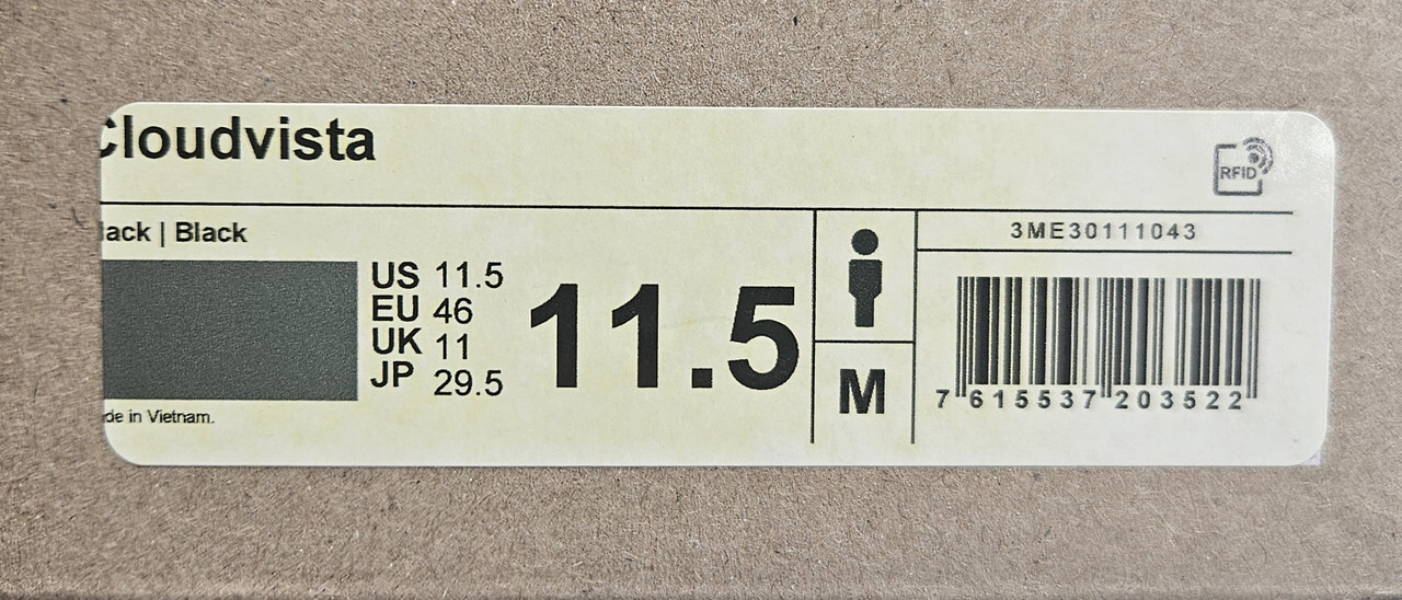 ON CLOUD RUNNING 3ME30111043 CLOUDVISTA BLACK/BLACK US 11.5 EU 46 This item is new as shown.
