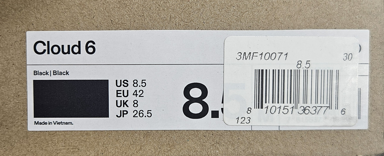 ON 3MF10071043 CLOUD 6 Black/bLACK US 8.5 EU 42 This item is new as shown.