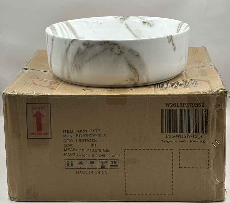 P15-WHSW-15_A MARBLE ROUNDED VESSEL SINK This item is new in an opened box.