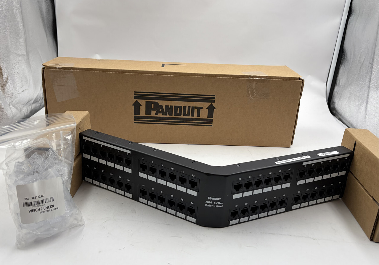 PANDUIT DPA486X88TGY DP6 CAT 6A 10GIG 48 PORT ANGLED PATCH PANEL This item is new as shown (one opened for pics).