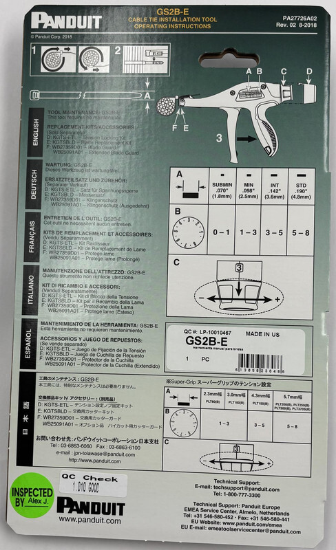 PANDUIT GS2B-E MIL-STD MS90387-1 ERGONOMIC CABLE TIE GUN INSTALLATION HAND TOOL This item is new and sealed as shown.