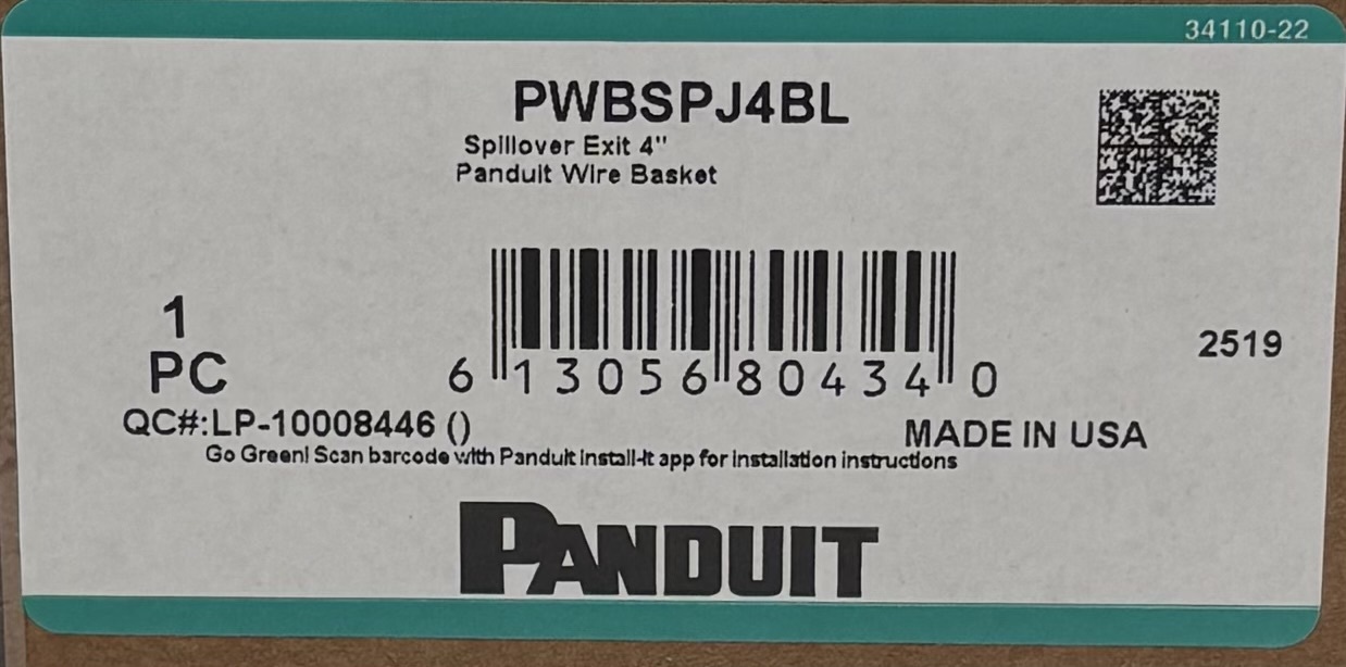 Panduit PWBSPJ4BL Spillover Exit 4" Wire Basket This item is new and comes as shown.