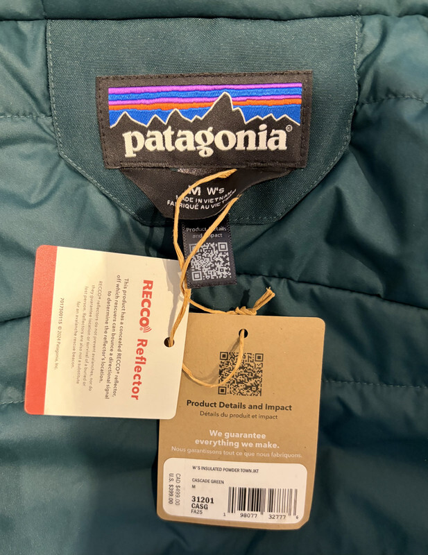Patagonia 31201 Women's Insulated Powder Town Jacket Size Medium M Cascade Green This jacket is brand new with original tags as shown.