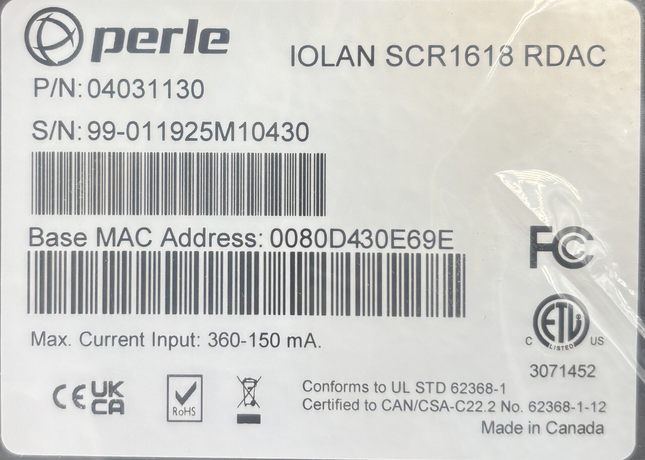 Perle 04031130 Iolan Scr1618 Rdac Secure Console Computer Server This item is new as shown.