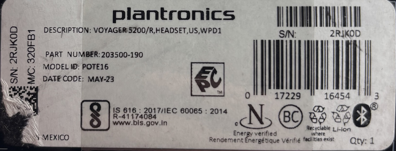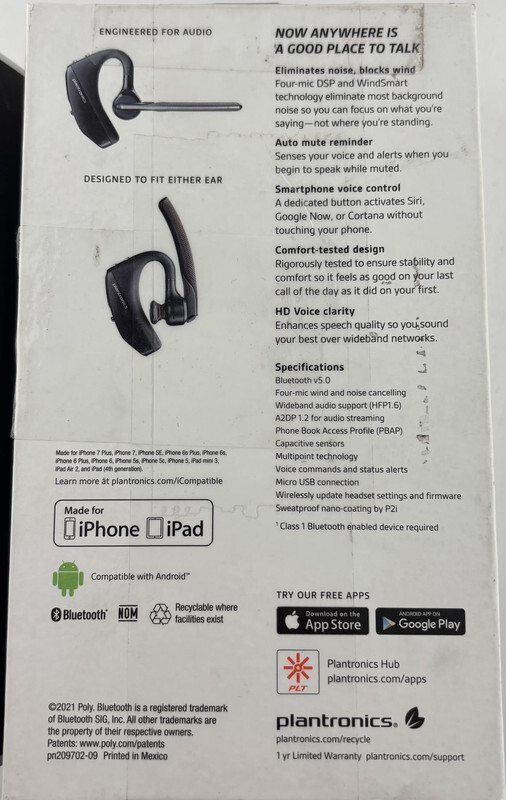 Plantronics Voyager 5200 203500-190 FourMic Noise Cancellation Bluetooth Headset This item is new as shown.