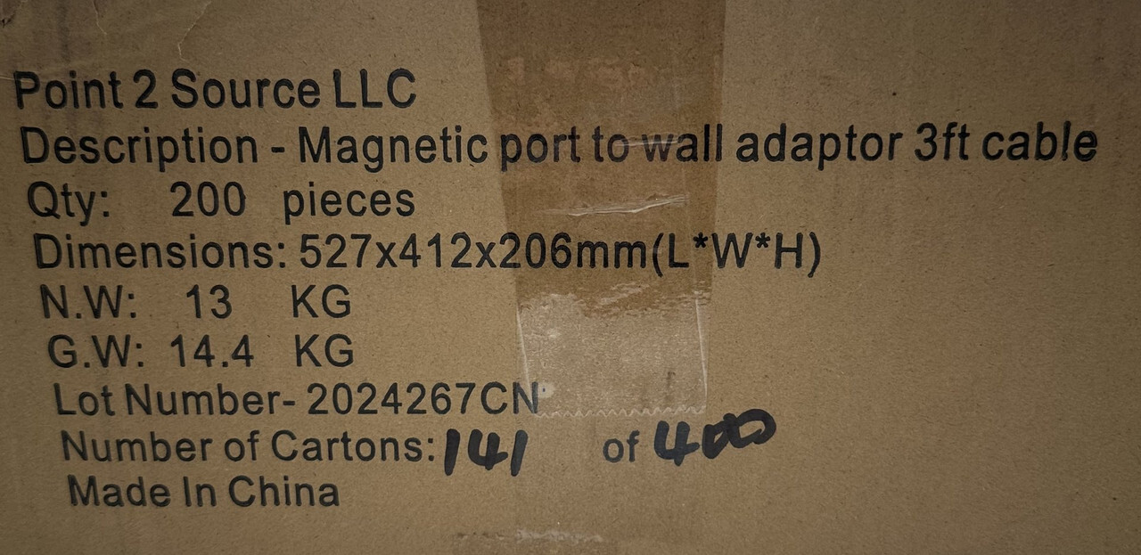 POINT 2 SOURCE M050200-S86TYU Magnetic Port To Wall Adapter 3ft Cable This item is brand new from bulk pack as shown.