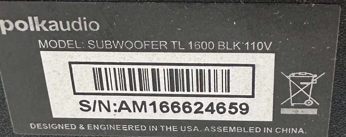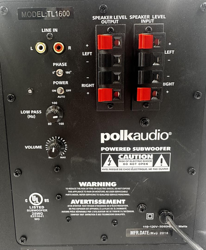 POLKAUDIO SUBWOOFER TL 1600 BLK 110V 110-120V-50/60 Hz 100 Watts This item is new without a box as shown.