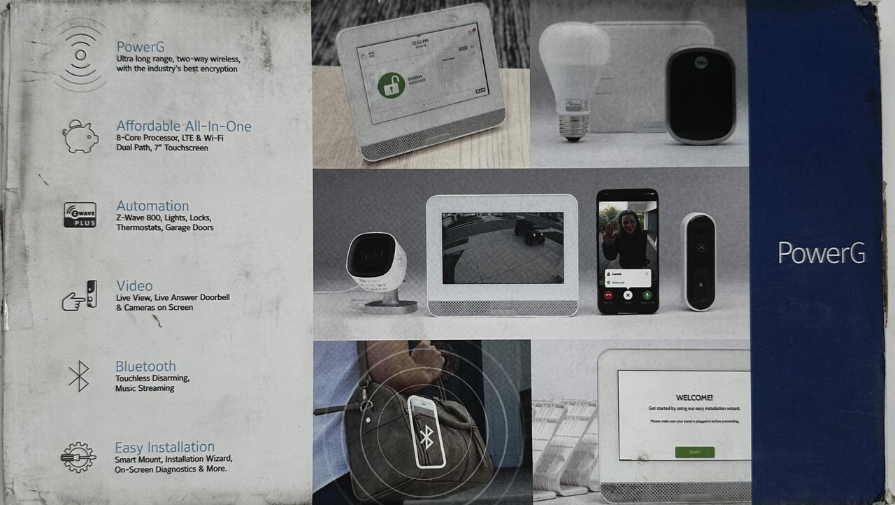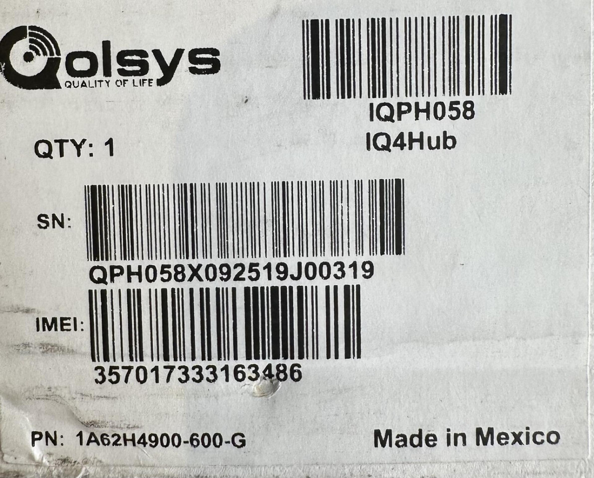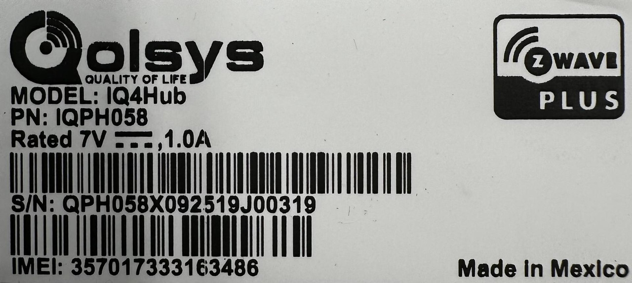 Qolsys Iq4 Hub Powerg Home Hub 7" Touchscreen iqph058 w/ power cord This item is brand new in a freight worn box as shown.