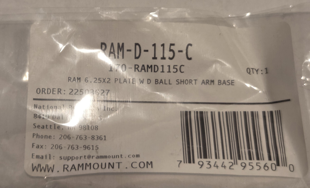 Ram Mounts Ram-d-115-c Aluminum 6.25 X 2 Inch Plate On Short Arm Round Base This item is new and internally sealed as shown