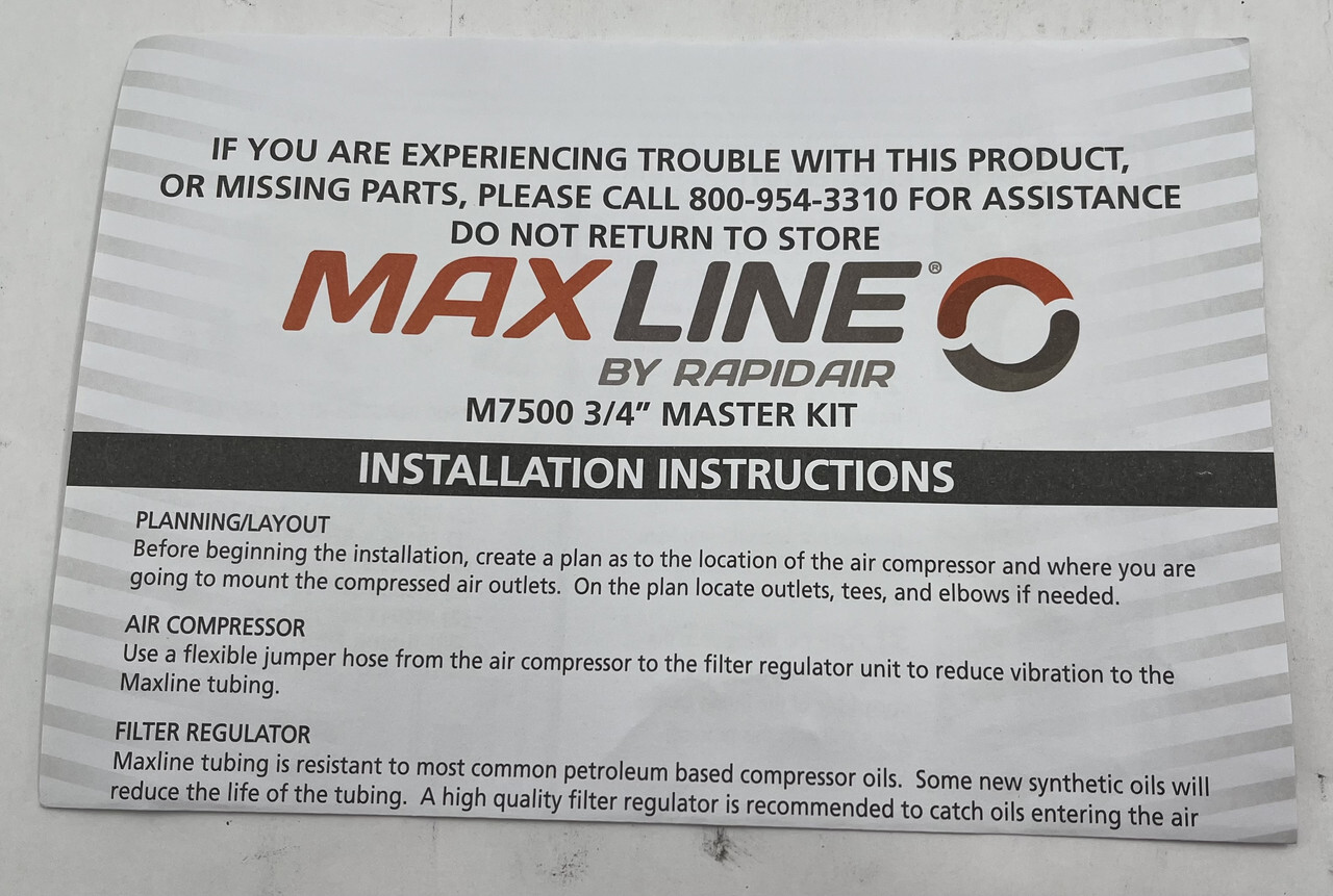 RAPIDAIR M7500 MAXLINE 3/4" MASTER AIR HOSE KIT This item is new in original box as shown.