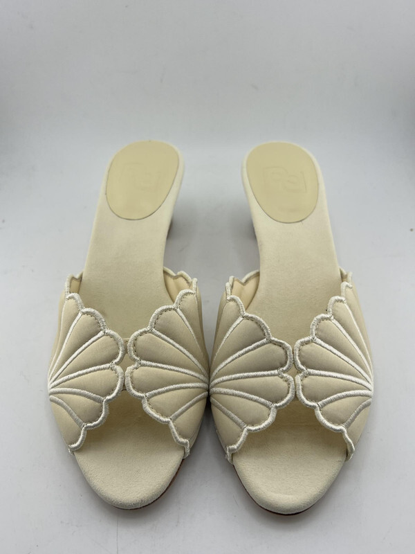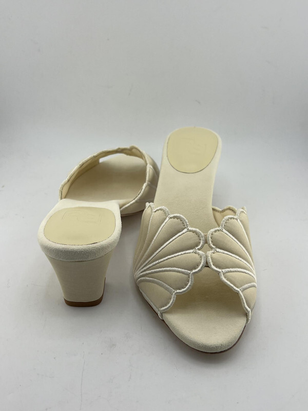 REFORMATION WALDENA BLOCK HEELED MULE IN CREAM PUFF TAFFETA 1317764CPT SIZE 7.5 This item comes brand new with manufacturer box as shown.