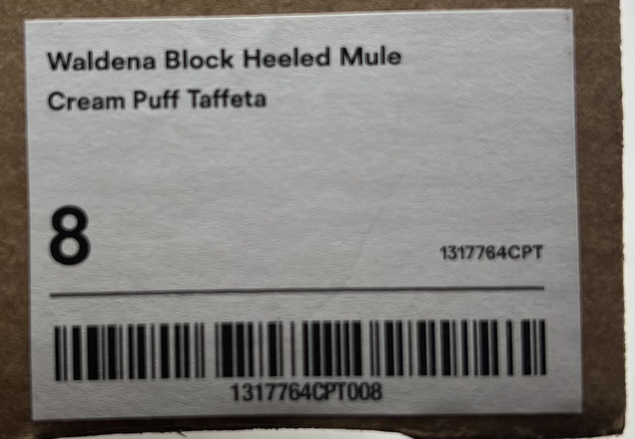 REFORMATION WALDENA BLOCK HEELED MULE IN CREAM PUFF TAFFETA 1317764CPT SIZE 8 This item comes brand new with manufacturer box as shown.