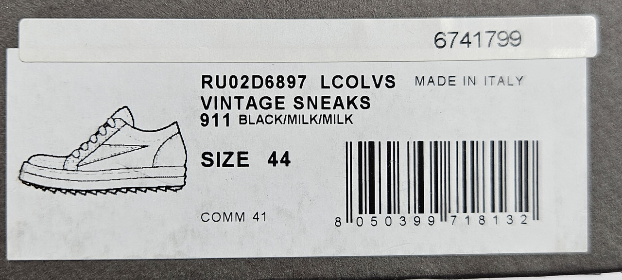 RICK OWENS RU02D6897 LCOLVS 911 PORTERVILLE VINTAGE SNEAKERS BLACK MILK US 11 EU 44 UK 10 This item is new as shown.