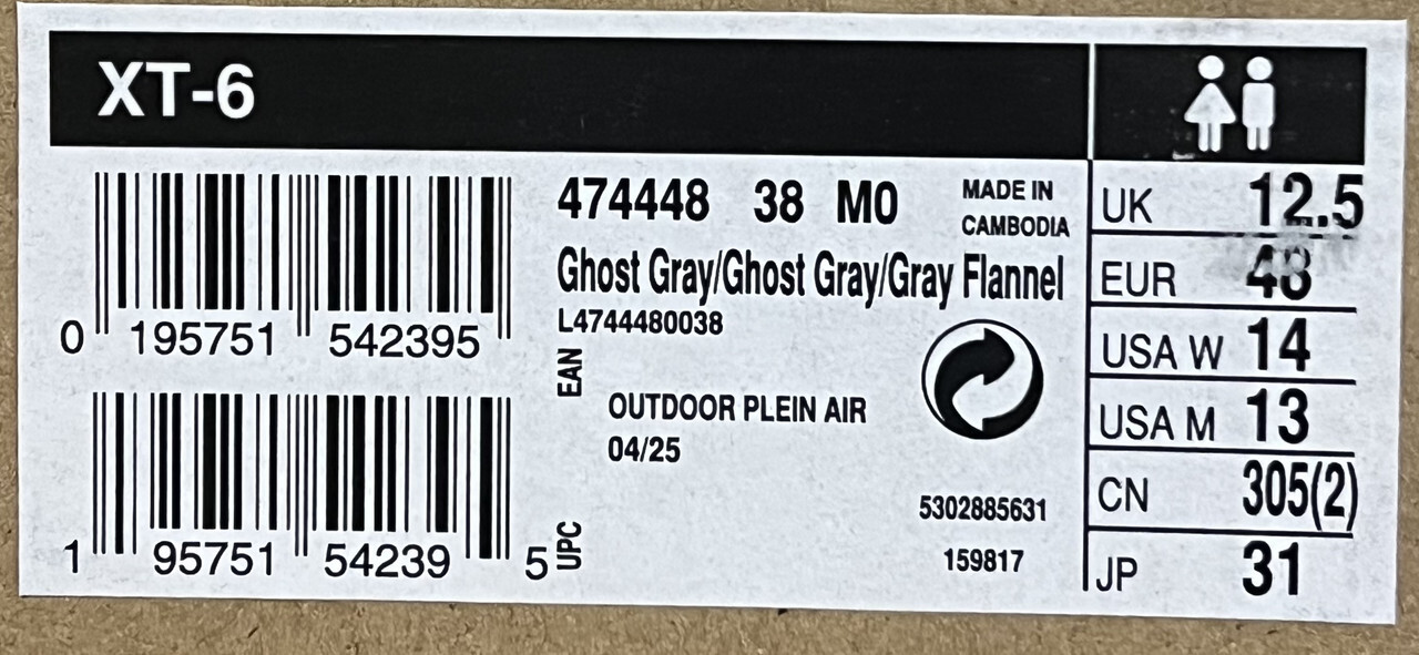 SALOMON XT-6 474448 GHOST GRAY/GHOST GRAY/GRAY FLANNEL OUTDOOR SHOES SIZE M13 This item is new as shown.