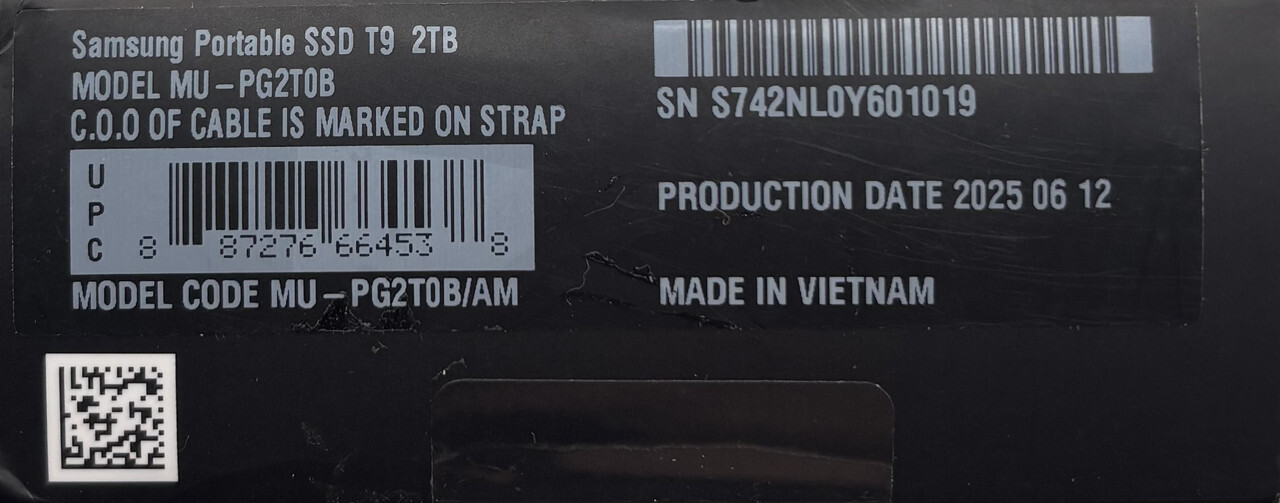 Samsung Mu-pg2t0b External 2tb T9 Usb-c 3.2 Portable Solid State Drive Ssd This item is new as shown.
