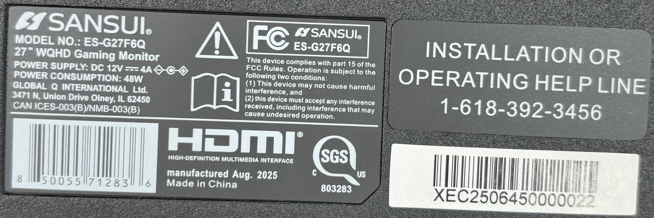 Sansui ES-G27F6Q 27" 2K LED Gaming Computer Monitor HDMI 200Hz This item is new as shown.