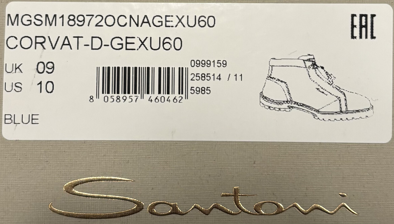 Santoni Corvat-D-GEXU60 MGSM18972OCNAGEXU60 Men's Blue Suede Hiking Boots Mens 10 These shoes are new and come in the original but freight worn box as shown.
