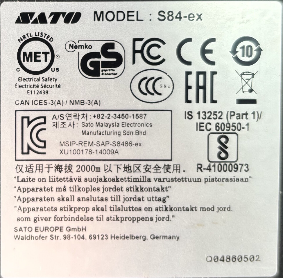 - Manufacturer: SATO