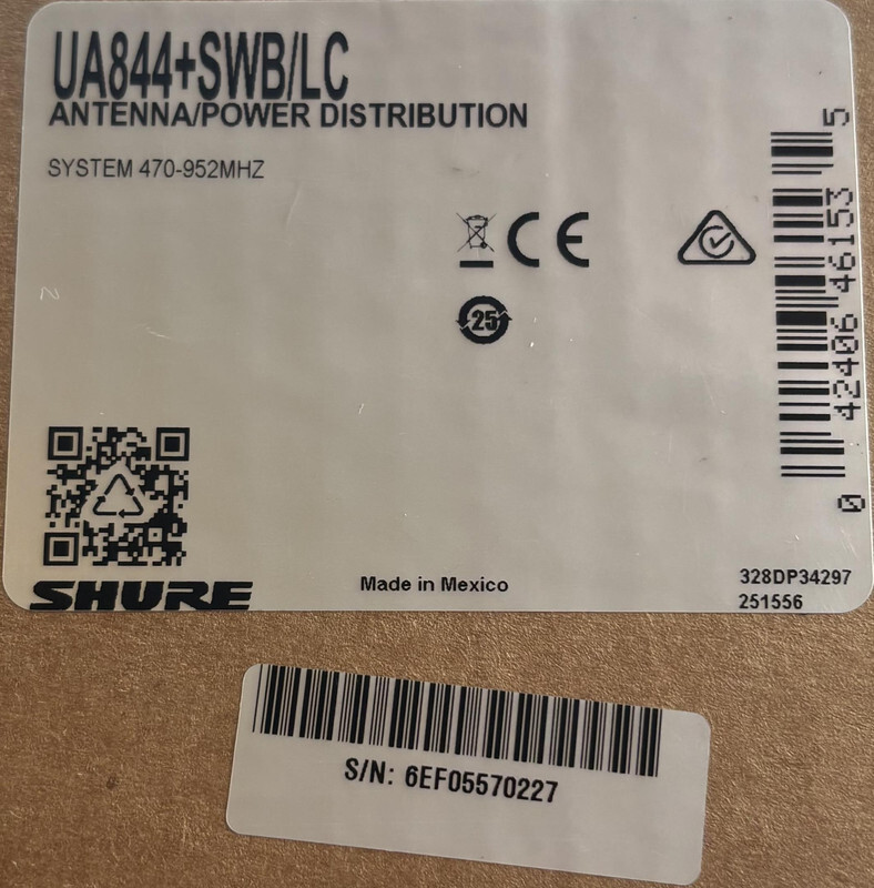 Shure UA844+SWB/LC Antenna/Power Distribution System 470-952MHZ This item is new and comes in the original box as shown.