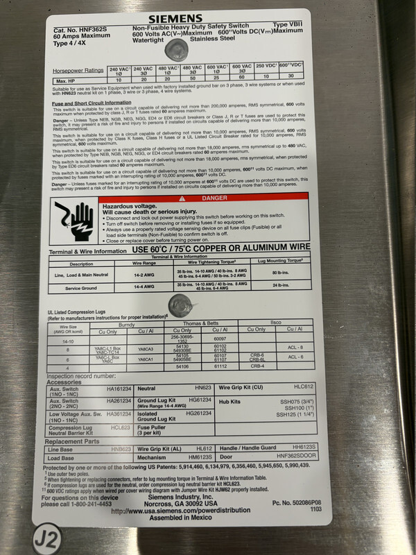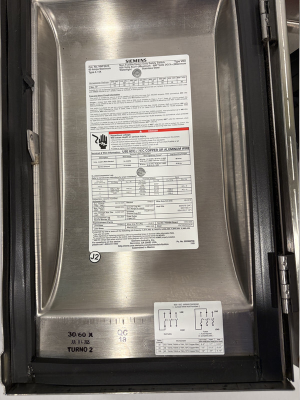 Siemens HNF362S Heavy Duty Safety Switch 60A/600V Stainless Steel This switch is in excellent condtion with orginal freight worn box as shown