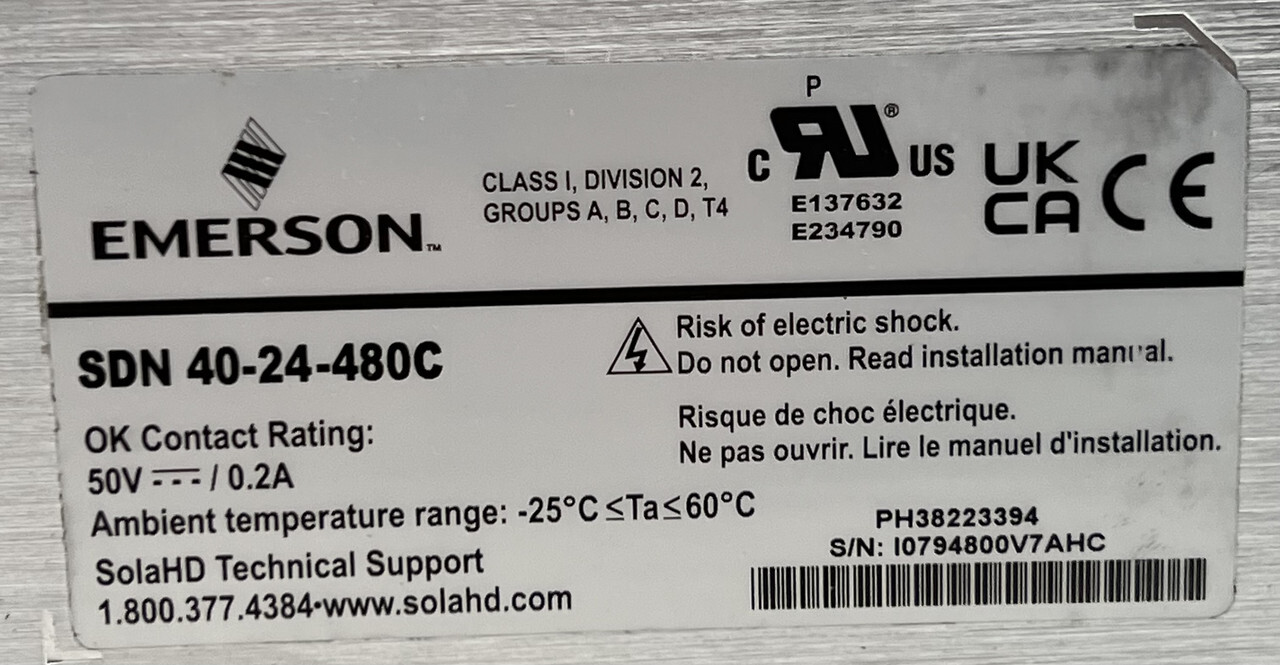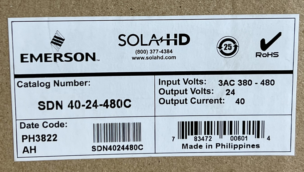 Sola Emerson SDN 40-24-480C DIN Rail Power Supply 24VDC OUTPUT This item comes new in an opened box as shown