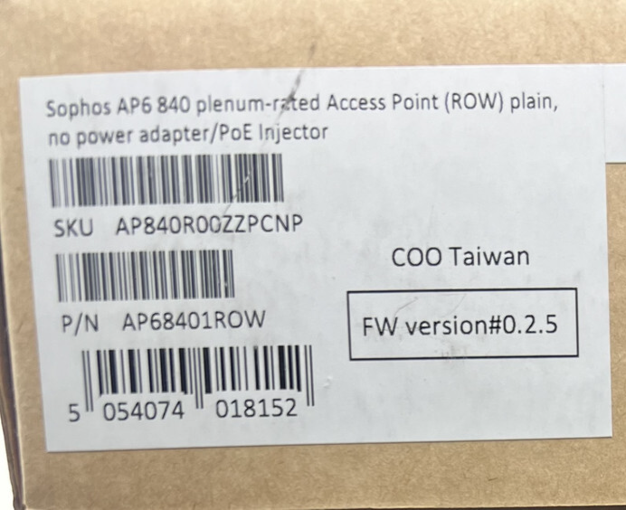 Sophos AP6 840 plenum-rated ROW WiFi 6E Wireless Access Point AP68401ROW This item is brand new and comes without original packaging as shown.