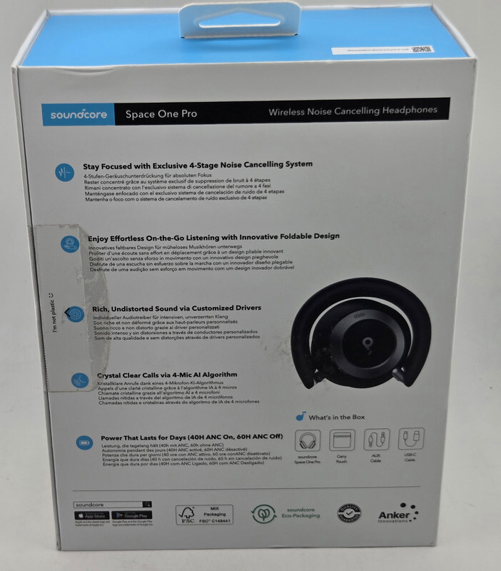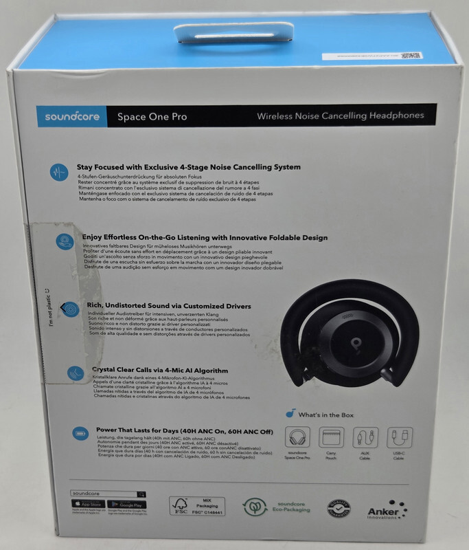 Soundcore A3062 Space One Pro Noise Canceling Bluetooth Headphones Jet Black This item is new sealed in slightly freight worn box as shown