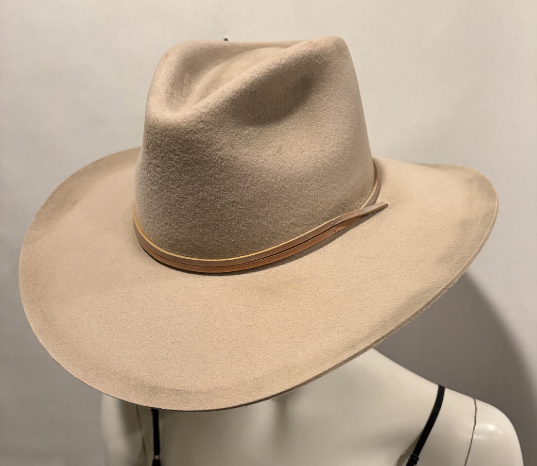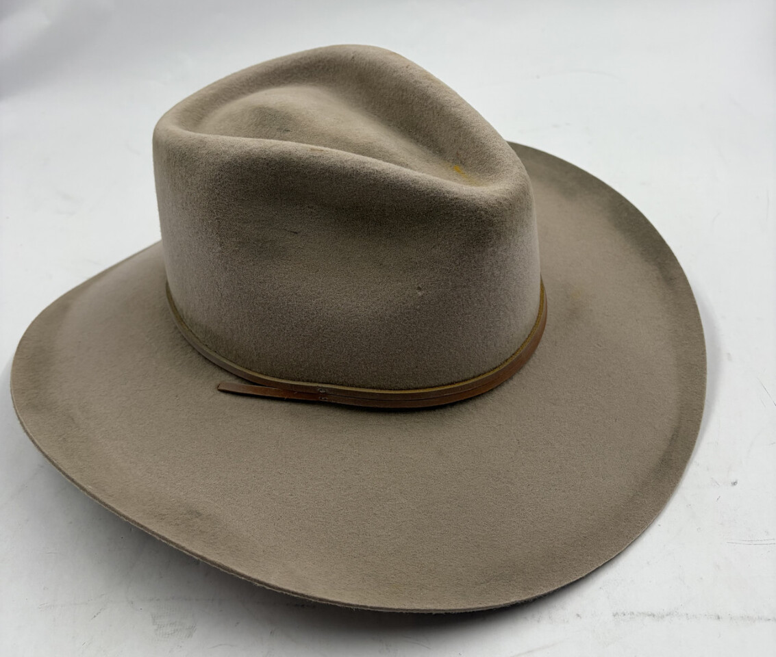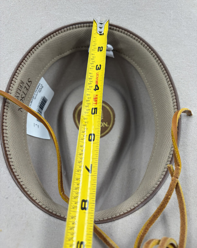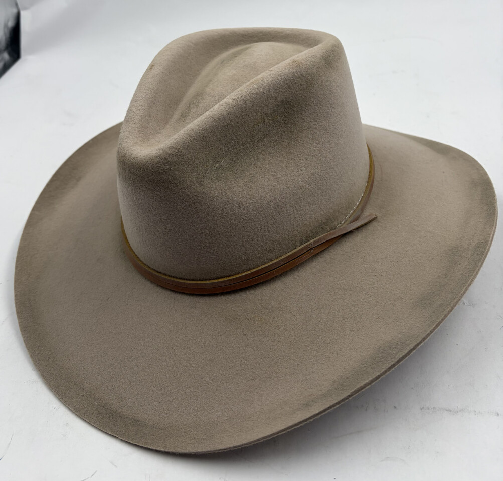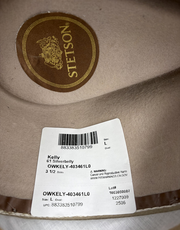 STETSON MENS KELLY OWKELY DISTRESSED WOOL COWBOY HAT LARGE L 61 SILVER BELLY This item is brand new in perfect condition as shown. The brim is 3 1/2".