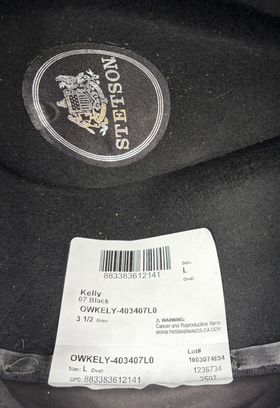 STETSON MENS KELLY DISTRESSED WOOL OUTBACK COWBOY HAT BLACK LARGE OWKELY This item is brand new in perfect condition as shown. The brim is 3 1/2".