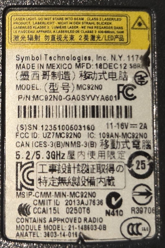 - Part Number: MC92N0-GA0SYVYA601