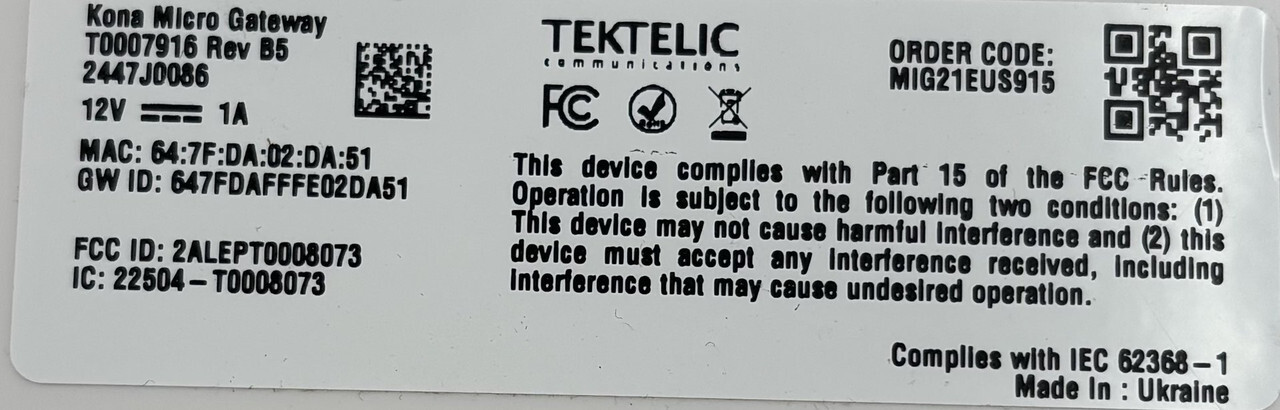 - Manufacturer: TEKTELIC