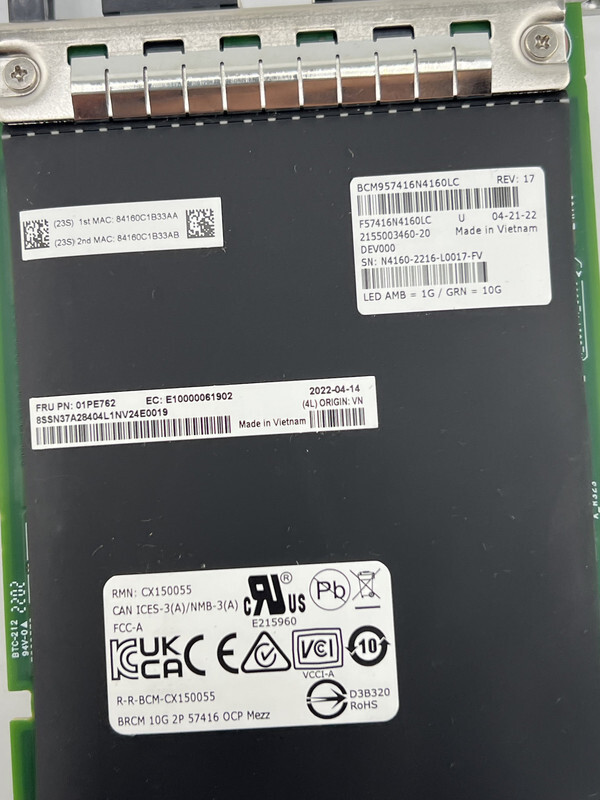 ThinkSystem Broadcom 57416 10GBASE-T 2-port OCP Ethernet Adapter 01PE762 This is a new server pull without original packaging as shown.
