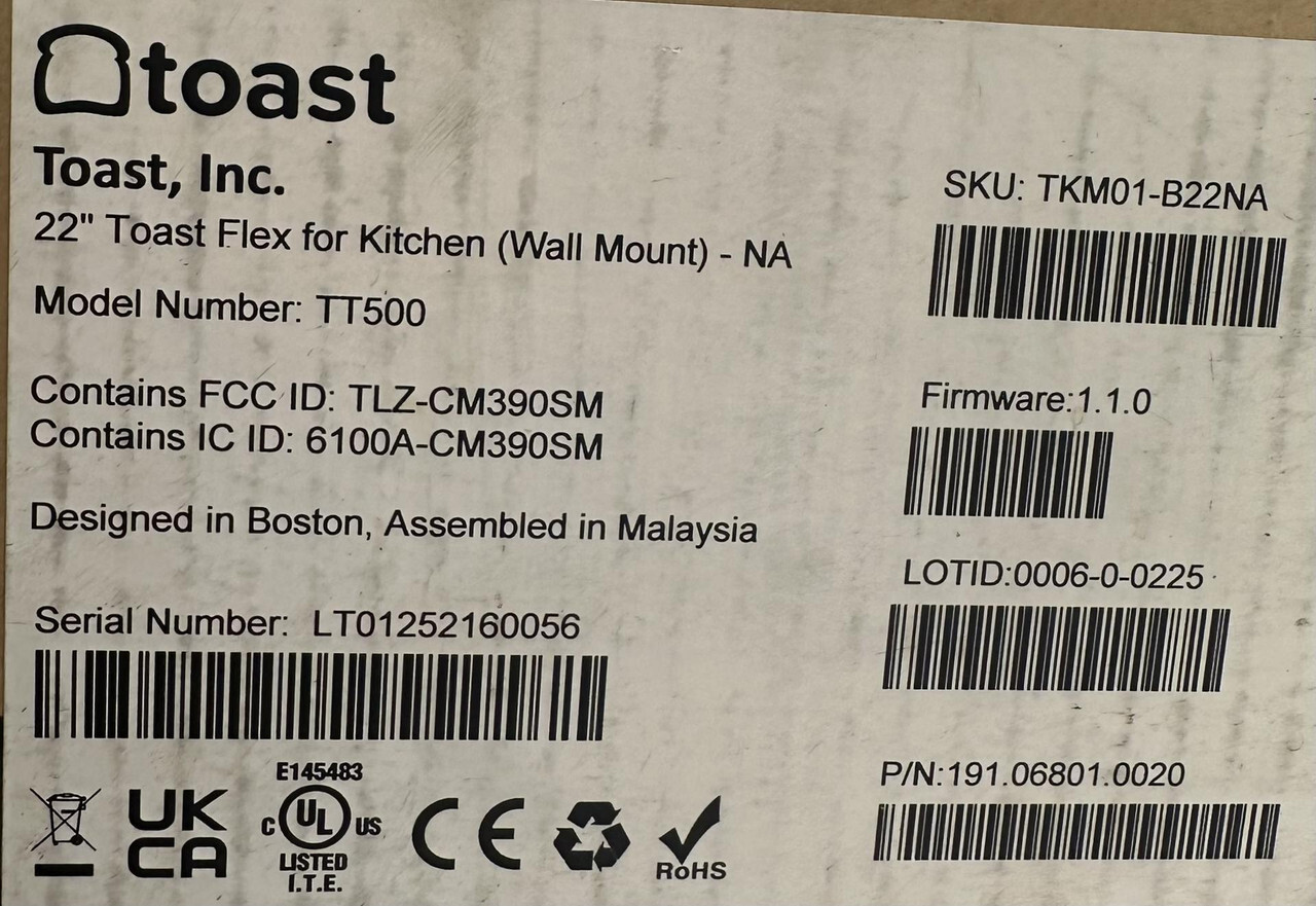 Toast Flex 22" Screen Flex Kitchen W/ Wall Mount TT500 191.06801.0020 This item is new in an opened box.
