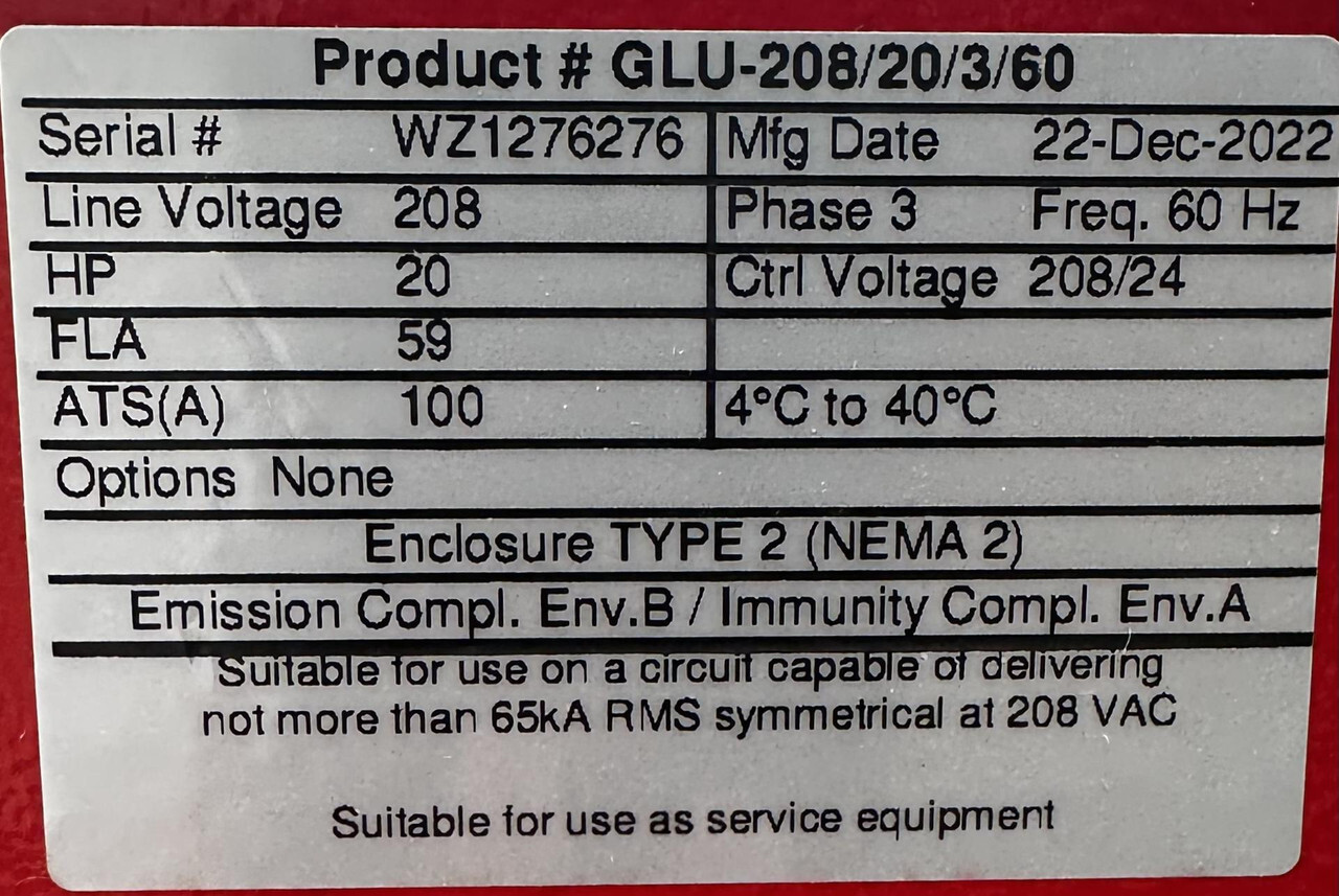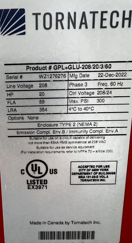 TORNATECH GPL+GLU-208/20/3/60 FIRE PUMP CONTROLLER 20HP 3 PHASE This item is new as shown.