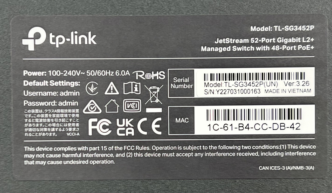 - Part Number: TL-SG3452P(UN)