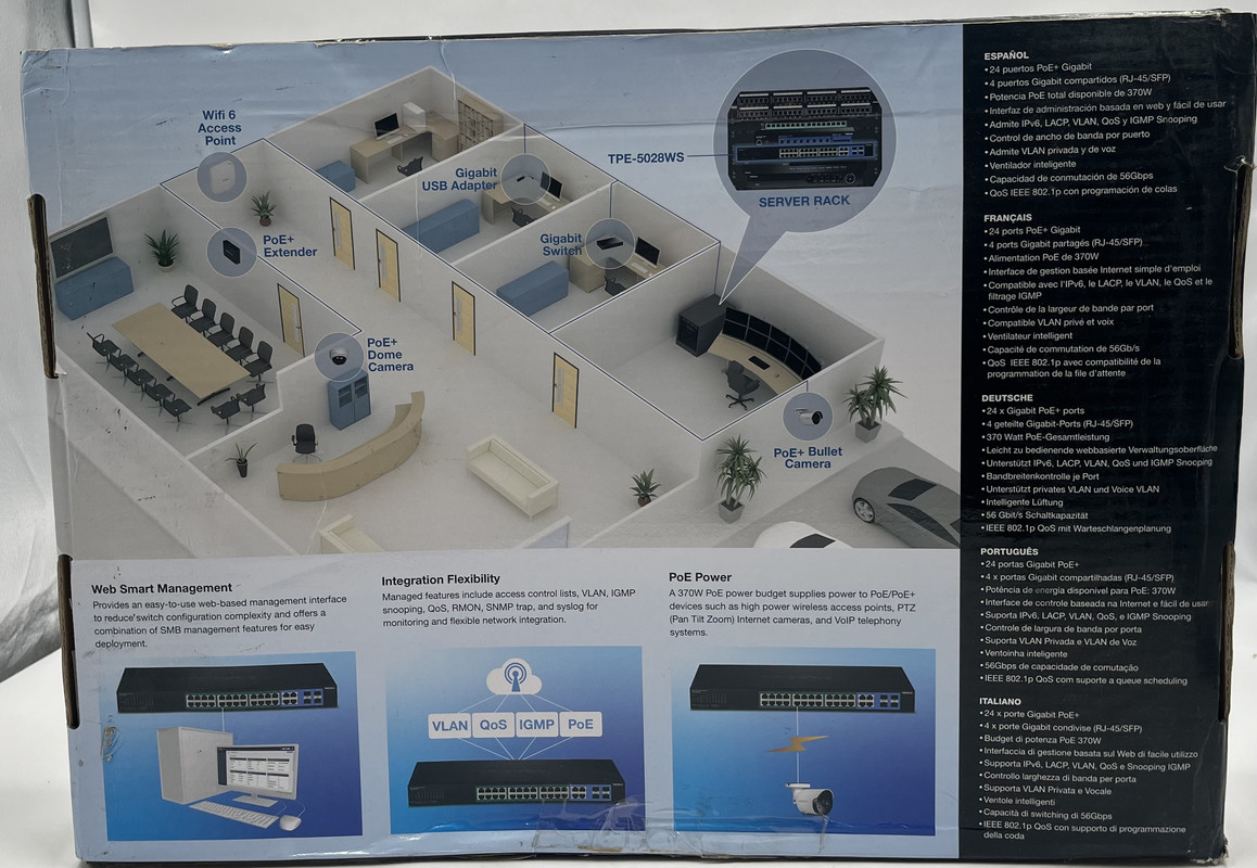TRENDnet TPE-5028WS 28P Web Smart PoE+ Switch 24XGigabit PoE+ 4xShared Gigabit This item is new as shown.