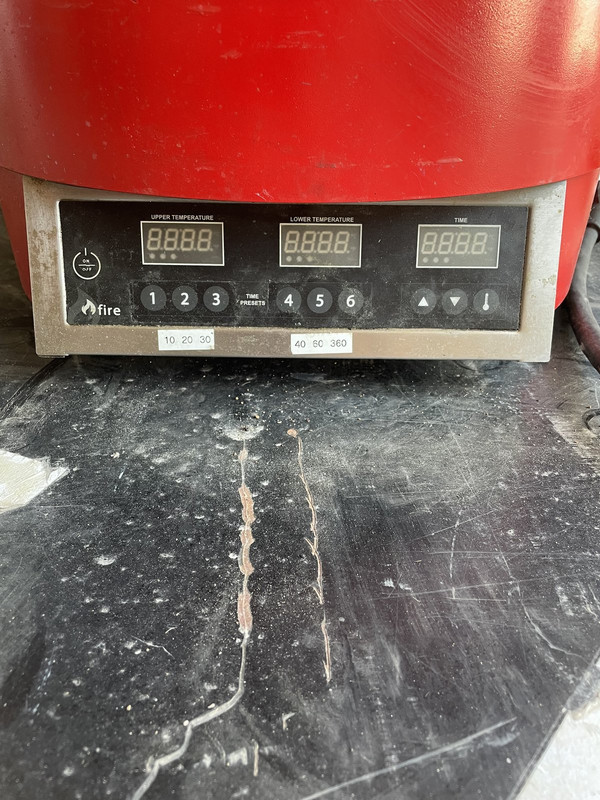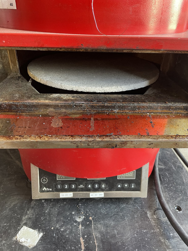 - Notes: This item comes as shown in the images. It is in good working condition with oven control button wear without affect to the operation of the oven. It includes 4 feet knobs, 2 thumb screws, a power cord, and comes with a pizza stone. the manufacturer date is 08/2020