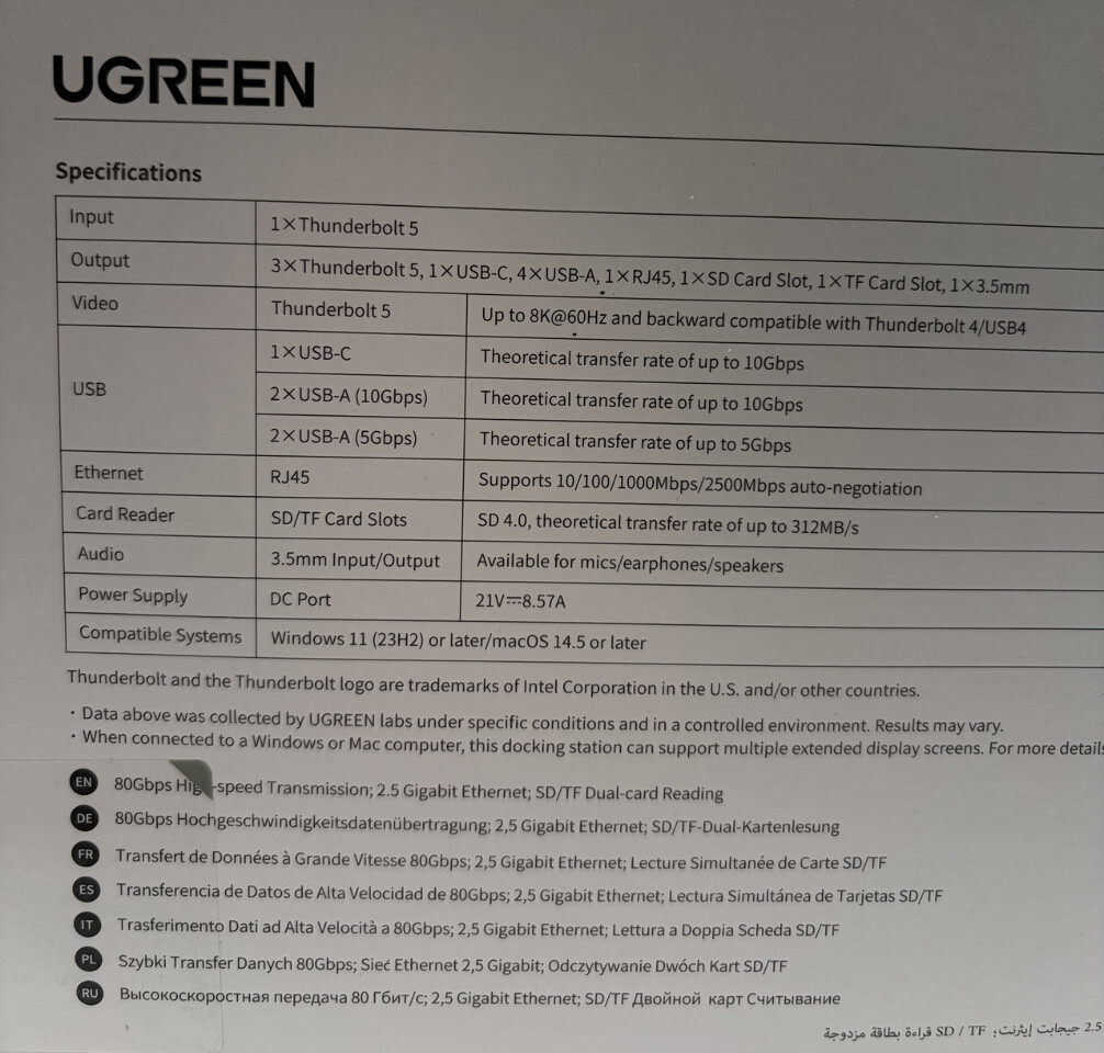 UGREEN Revodok Max Thunderbolt 5 Docking Station U715 13 in 1 45790 This item is sealed as shown