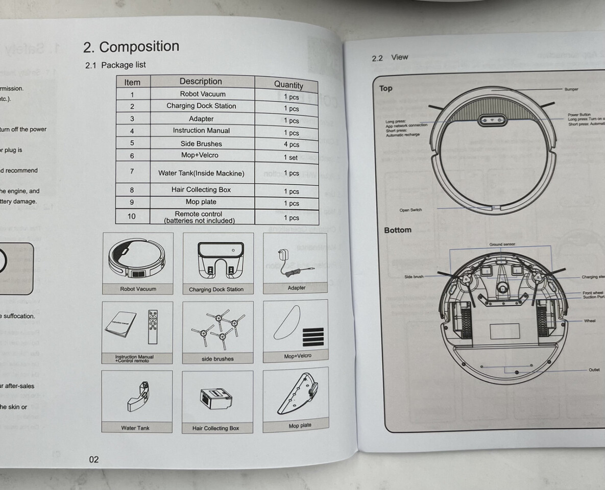 V3 v3-001-white-usAdapter Robot Vacuum and Mop Combo Support App remote This item is new in an open box as shown