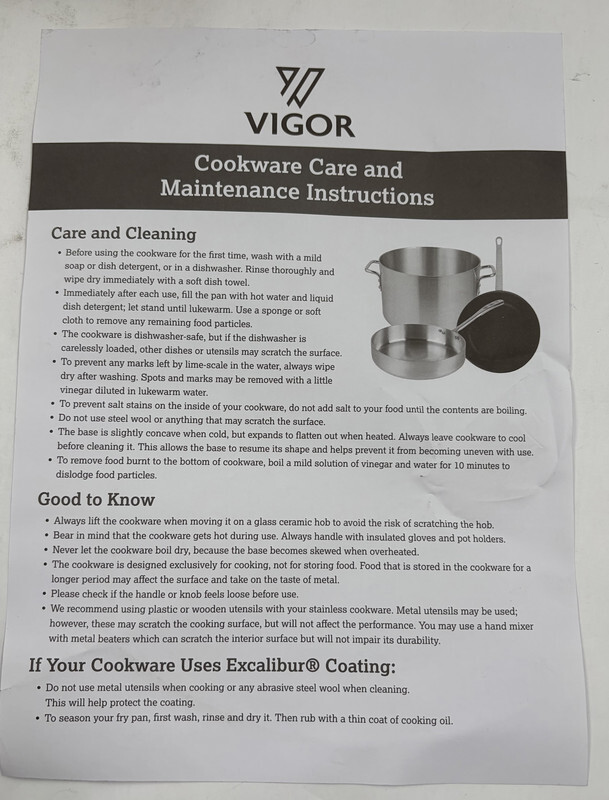 Vigor SS1 Series 20 Qt. Heavy Duty Stainless Stain Stock Pot with Lid This item is new as shown.
